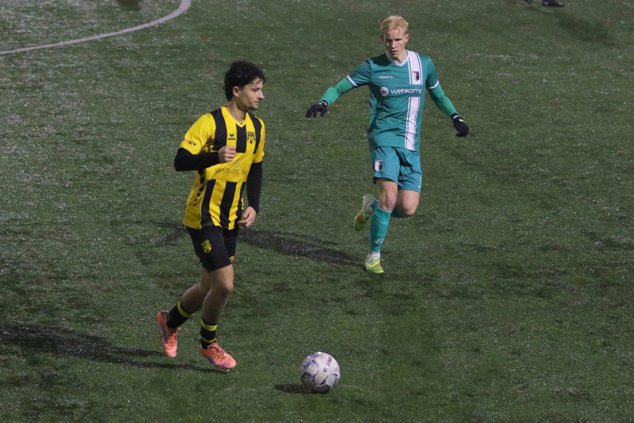 Twee minuten later was het wel raak. Randy Vink veroverde, enkele seconden nadat hij in het veld was gekomen, de bal en stuurde meteen Sam van den Anker de diepte in. Deze klopte Gijs Slaghuis op snelheid en werd vervolgens door Largo Karrenbelt onreglementair ten val gebracht. De door scheidsrechter Simeh Kiremit toegekende stafschop werd door Randy Vink feilloos benut (1-0).